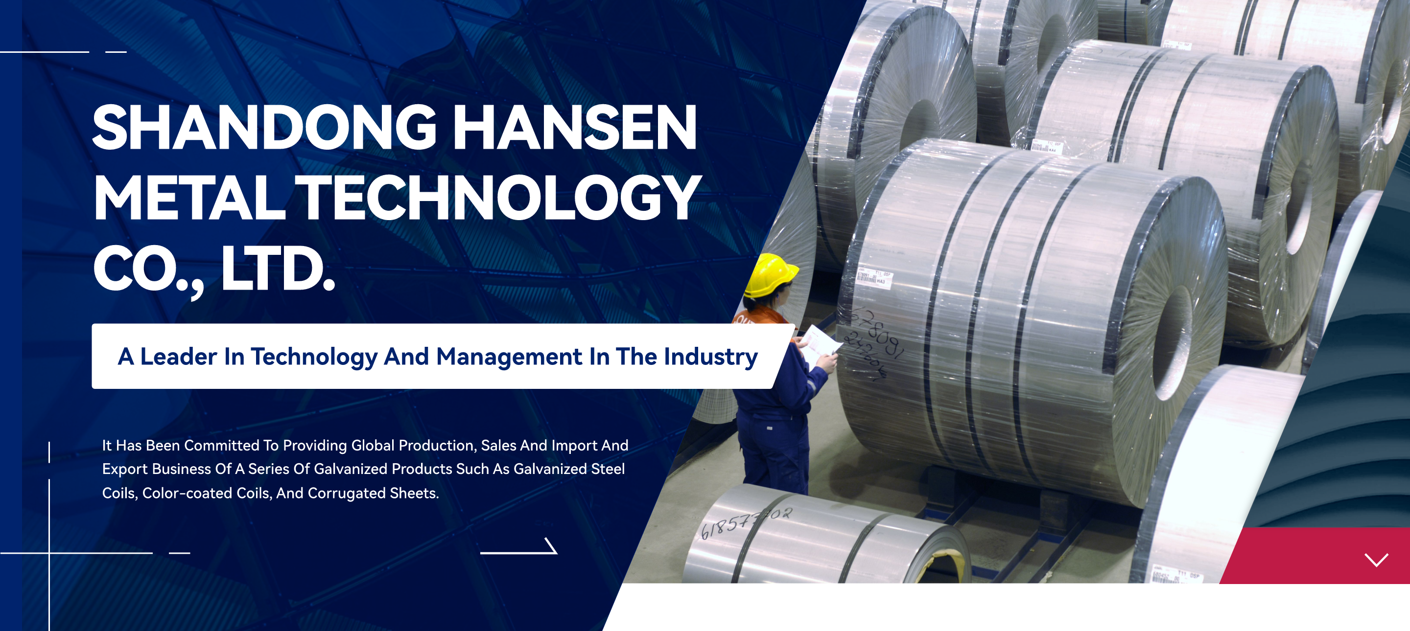 Shandong Hansen Metal Technology Co., Ltd. is a leader in technology and management in the industry. It has been committed to providing global production, sales and import and export business of a series of galvanized products such as galvanized steel coils, color-coated coils, and corrugated sheets. It has two hot-dip galvanized steel sheet production lines designed by China Iron and Steel Research Institute, with an annual output of 300,000 tons. Professional production and sales of thickness 0.11~0.60mm, width 750-1250mm, 55% galvanized steel plate (coating thickness 30-180g/flat), anti-fingerprint plate, color-coated plate, Kaiping, corrugated cardboard, galvanized steel wire.